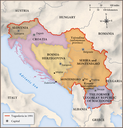 This map shows the former Yugoslavia from 1991 to around 2000.